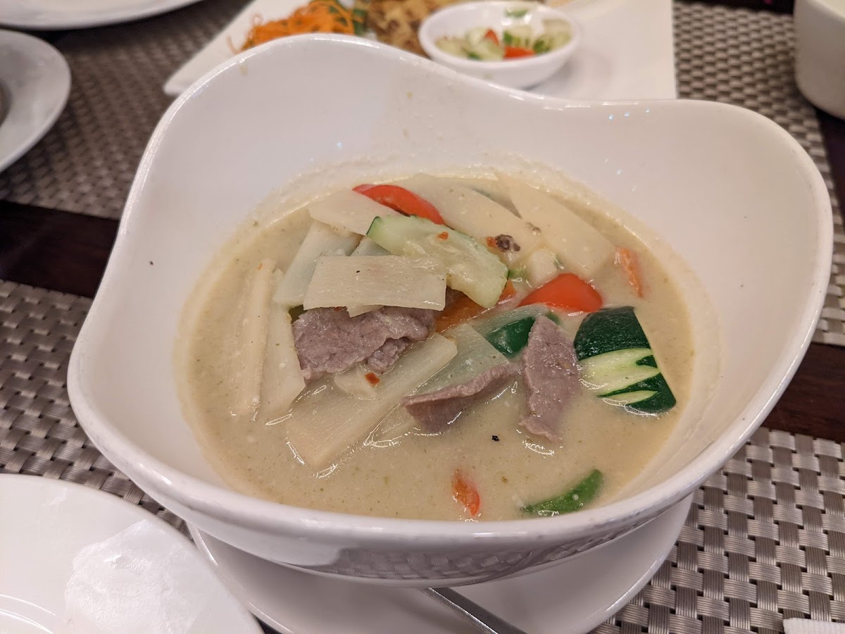 For those who love a bit more heat, the restaurant’s Green Curry is a must-try. Made with a rich coconut milk base, fresh vegetables, and your choice of protein-whether it's chicken, shrimp, or tofu-this curry delivers a satisfying spiciness that lingers just the right amount. It’s creamy, spicy, and incredibly flavorful, a perfect dish for anyone craving something bold.