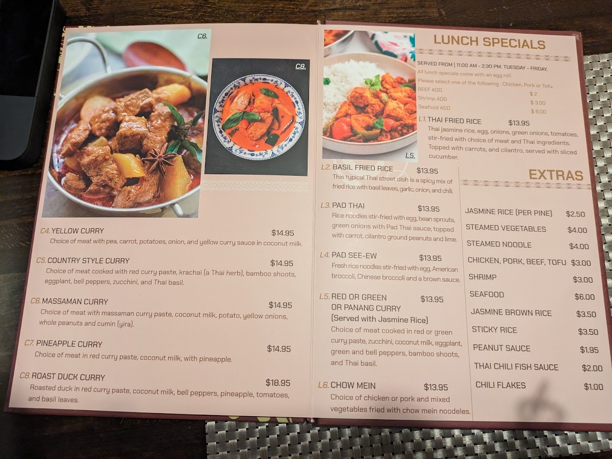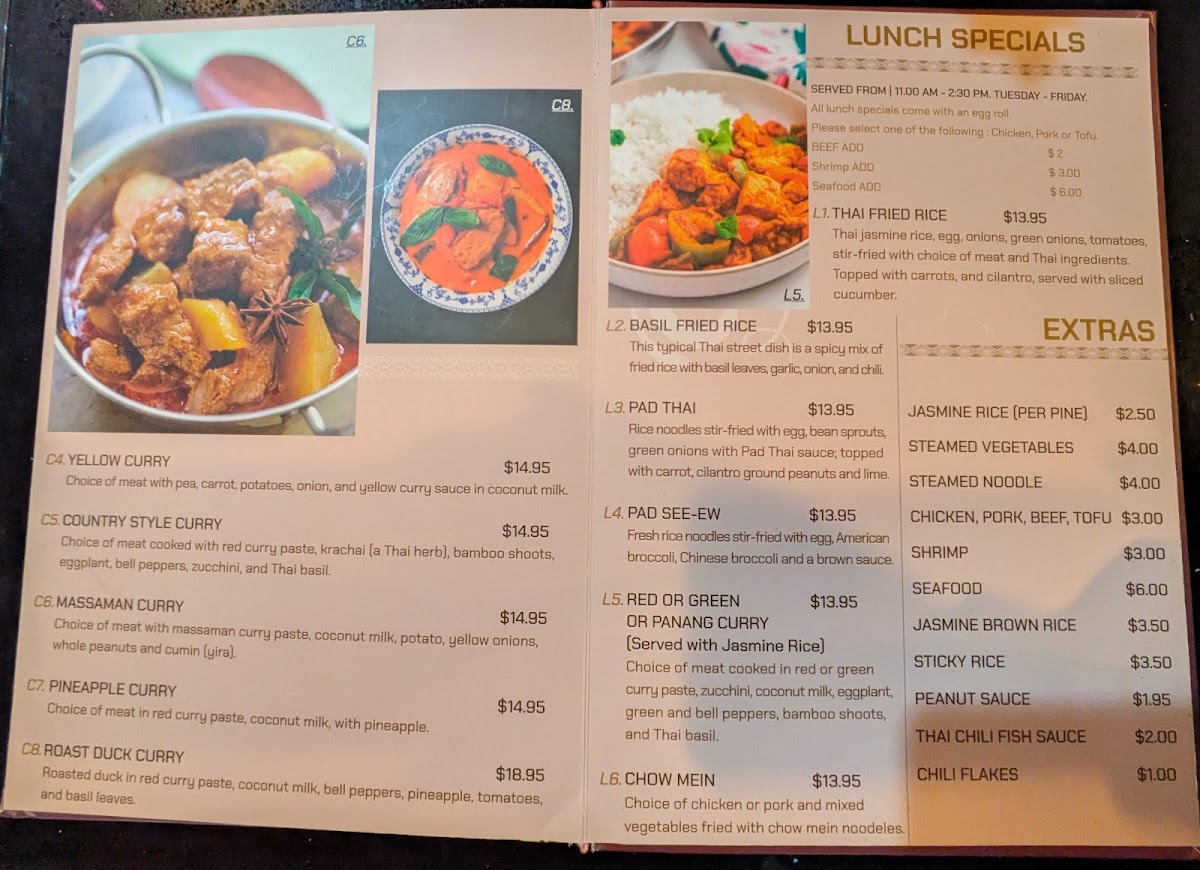 At Ponsawan Thai Cuisine Menu, the vibrant flavors of Thailand come to life right in Thornton, CO. Located at 16566 Washington St, this cozy spot offers a delightful array of dishes that promise to satisfy every craving. Whether you're in the mood for a spicy curry, a savory stir-fry, or a fresh, zesty salad, you'll find something that hits the spot. From the rich, aromatic flavors of Tom Yum soup to the classic Pad Thai, each dish is prepared with authenticity and care. The menu highlights the freshest ingredients, showcasing the best of Thai culinary tradition with every bite. Enjoy your meal with a selection of drinks that perfectly complement the bold and exciting flavors of Thai cuisine.